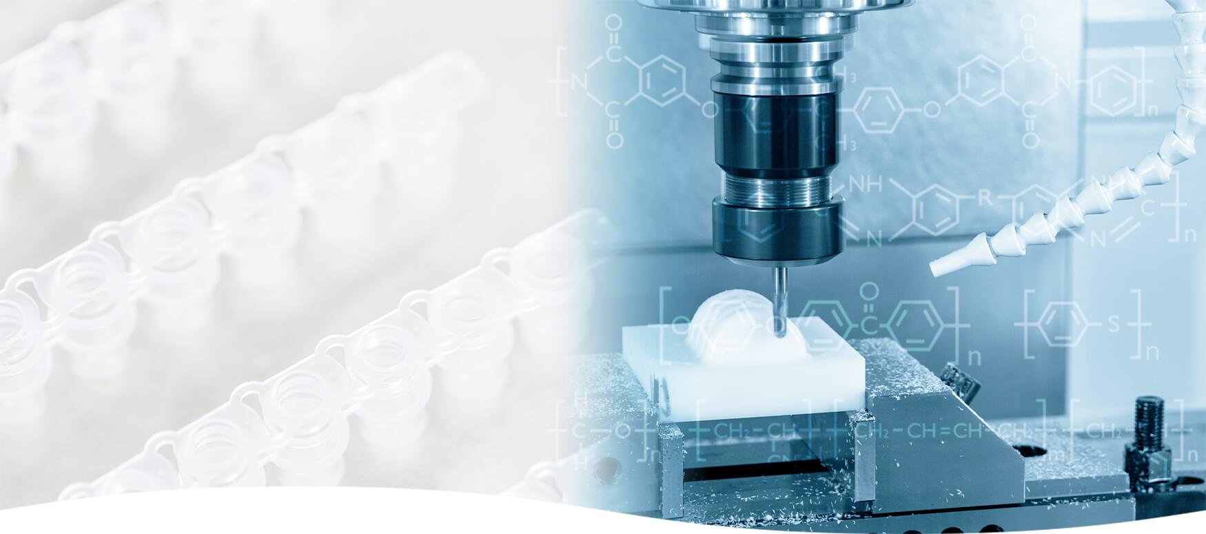 製剤生産用機械に使われるプラスチック部品は、薬液を使用しても変質しない「耐薬性」と、調合の際に加熱しても変形しない「耐熱性」に優れた樹脂が選ばれます。